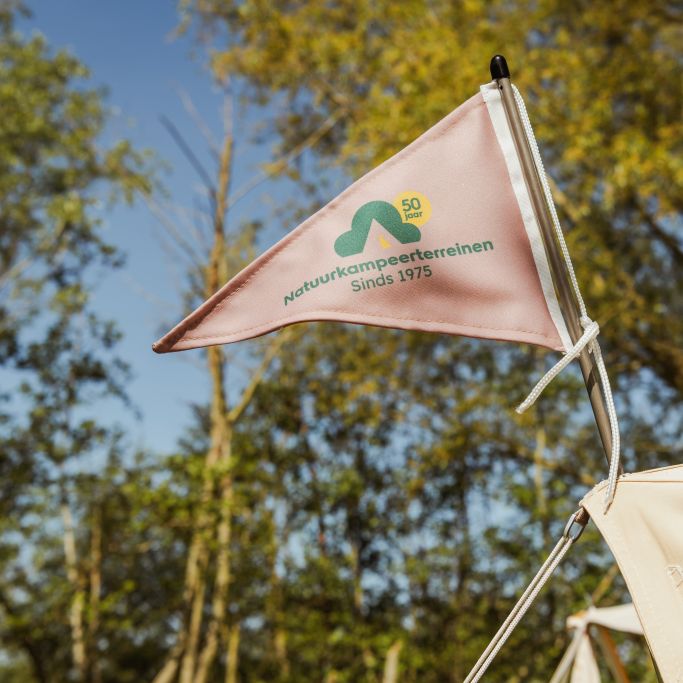 Je kent ze vast nog wel, de vaantjes voor boven op je tent. Dit vrolijke jubileumvaantje met ons speciale jubileumlogo is er een om trots op te zijn. Stevig bevestigd aan een aluminium stok (Ø 8,5 mm) die je zo op je tentstok of luifel steekt.